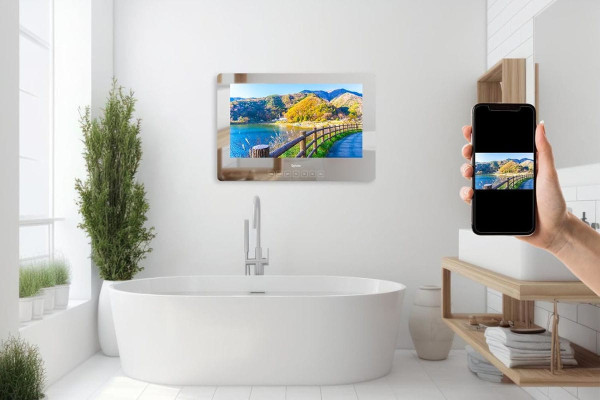 I remember the first time I saw a bathroom mirror with a built-in TV. I was at a ski lodge in Vail and called Barry to come see it. Amazing, but the embedded TV was tiny and the sound muffled. Todayâs smart mirrors are so much better. Iâll tell you the one I got below.