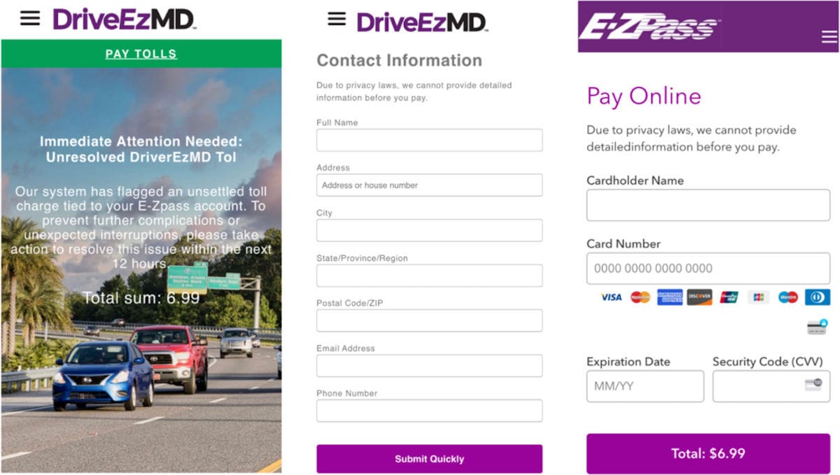 Click the link and youâre taken to a website that looks exactly like your real toll agency, down to the logo and colors. Youâre asked to enter your credit card info, your name and one-time security code.Â